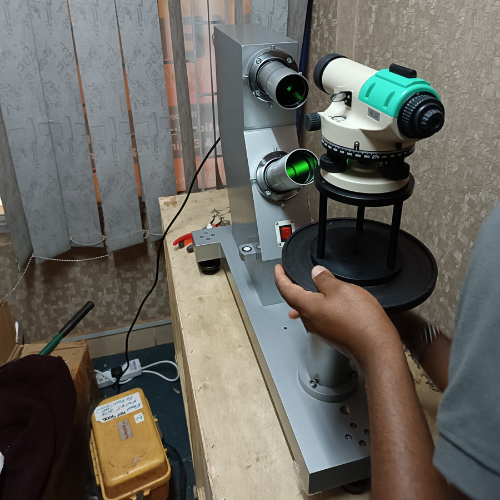 One of the primary processes used to maintain instrument accuracy, calibration is the process of configuring an instrument to provide a result for a sample within an acceptable range. Eliminating or minimizing factors that cause inaccuracy is a fundamental aspect of instrumentation design. An engineer uses a collimator tool for instrument calibration.